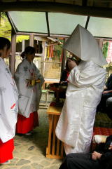 当社でも神前結婚式を受け付けておりますが、なにせ社殿が狭く、結婚式を執り行うのにふさわしい施設も整っておりませんので、簡素に行いたいという、小規模な結婚式しかお受けしておりません。親族をたくさん呼んで、正装して式を挙げたいと希望される方は、残念ながらお断りせざるを得ない状況です。